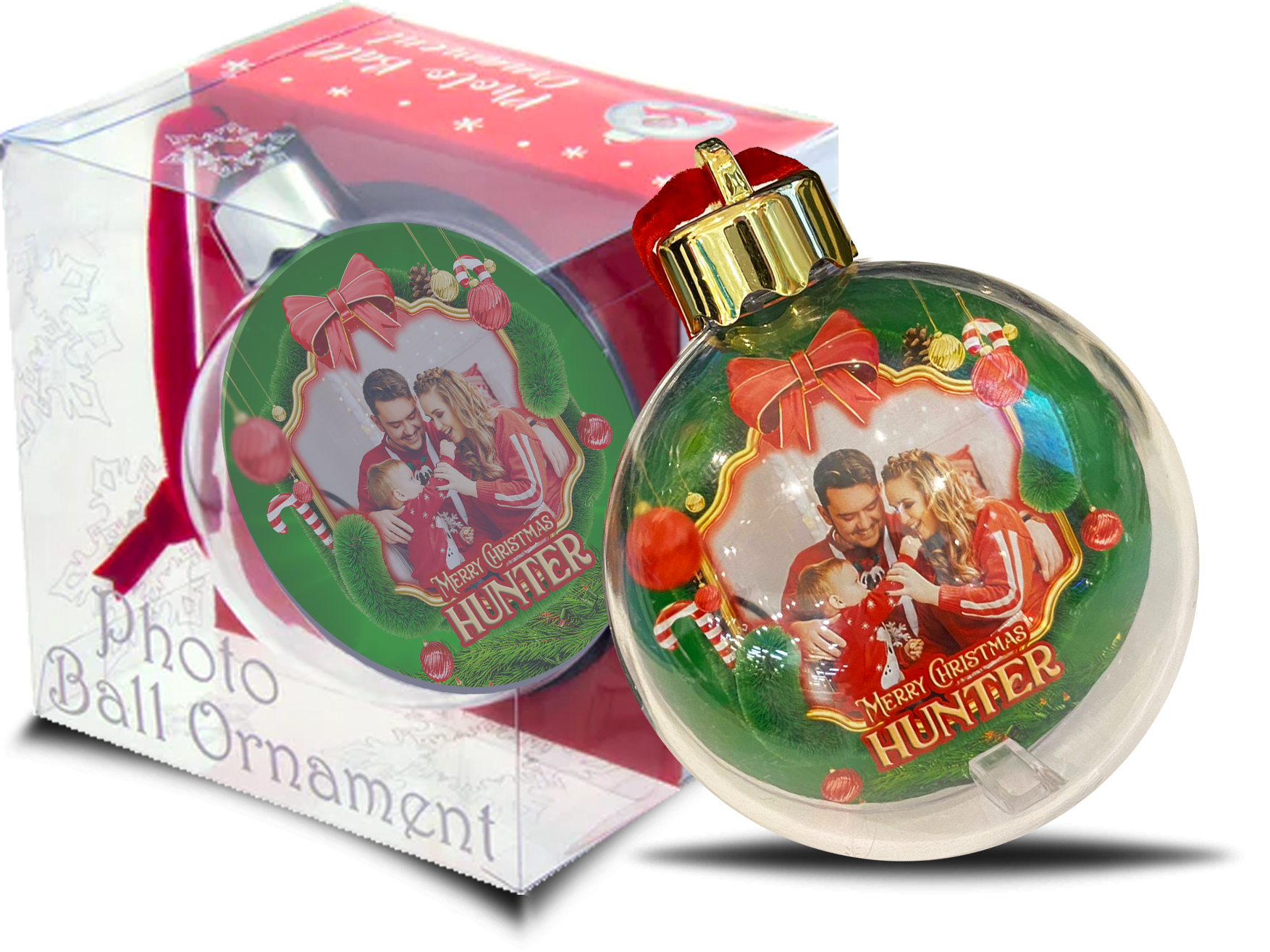 Clear plastic bauble that holds 2 photos 65mm.